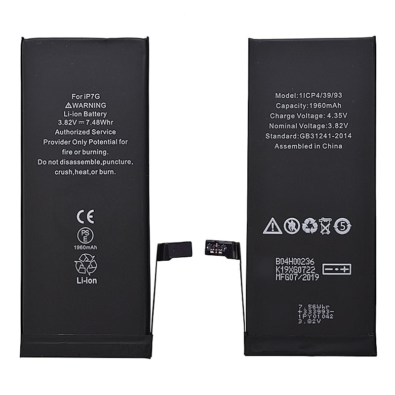 - Cada batería de iPhone 7 ha sido rigurosamente probada para garantizar un rendimiento óptimo, sin ciclos en la celda y con una capacidad del 95% o superior.